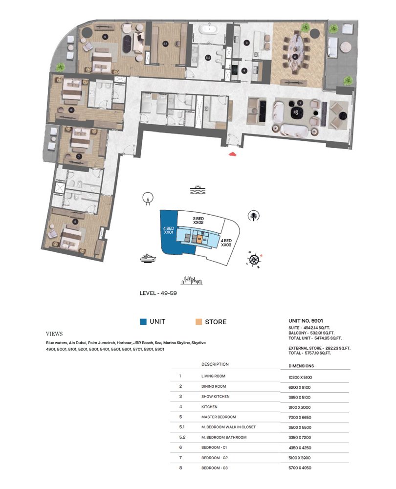 Residents have access to private indoor and outdoor amenities, including a gym, infinity pool, sauna, steam room, and outdoor cinema. The building also features a separate lobby, dedicated lifts, 24/7 security, and concierge services. Its central location provides easy access to beaches, shopping areas, and key parts of the city. The payment plan includes 20% at sales launch, 60% during construction, and 20% on handover.